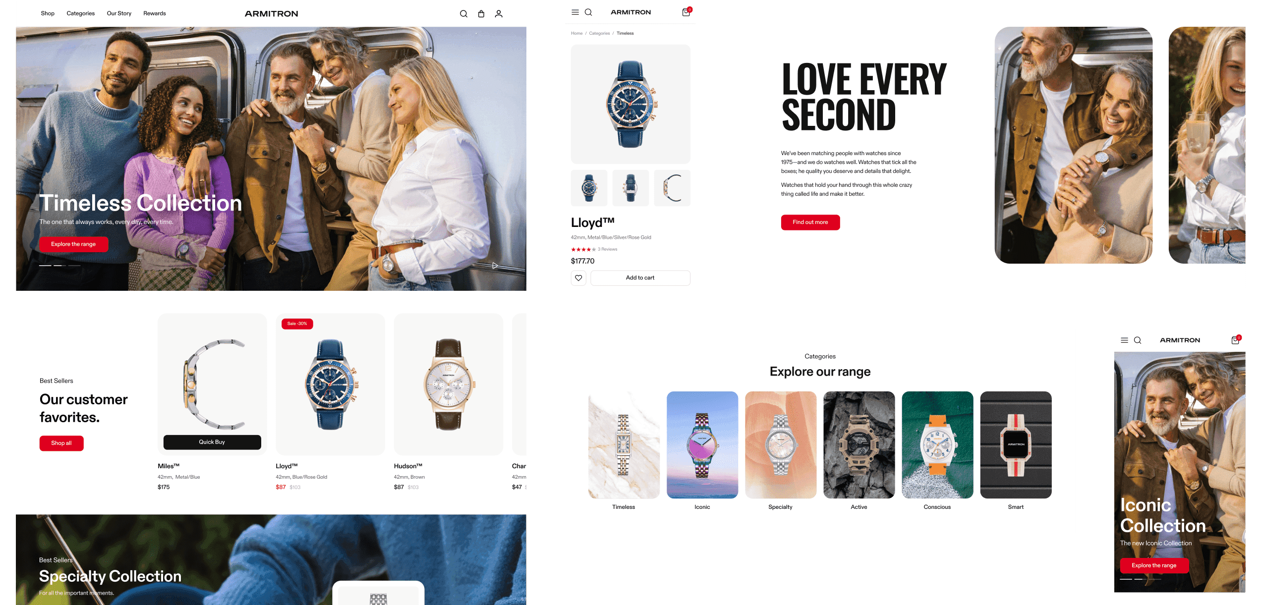 Motto developed Armitron’s new brand strategy, tone of voice, and creative identity, and our role was to implement it seamlessly in the Shopify store. We translated their wireframes into a high-performing ecommerce experience, ensuring that every design element aligned with the refreshed brand while optimizing for usability and conversion.