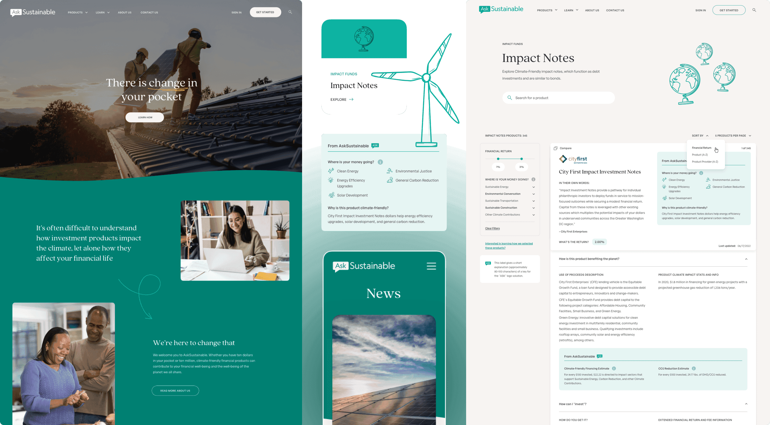 Ask Sustainable came to us with an idea for an accessible website, where the central role is played by a comparison feature that analyzes climate-friendly investment products. They wanted use to pair an accessible interface with a creative application of their branding.