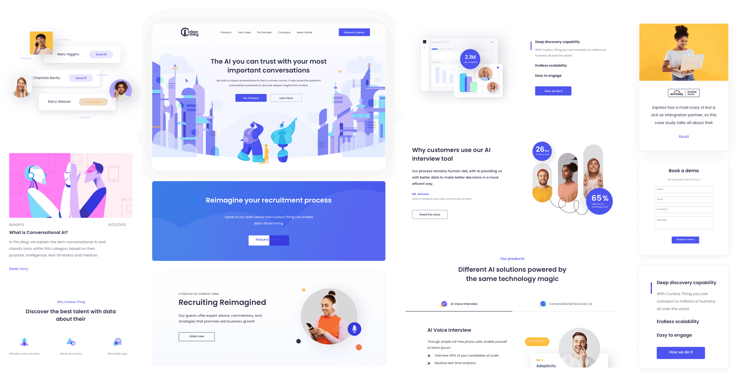 One of the key challenges was effectively communicating the distinct capabilities of Curious Things' AI voice interviewer. Our primary focus was on highlighting its selling points, such as time-efficiency and better candidate experience. They are crucial for recruiters seeking to streamline their hiring processes.