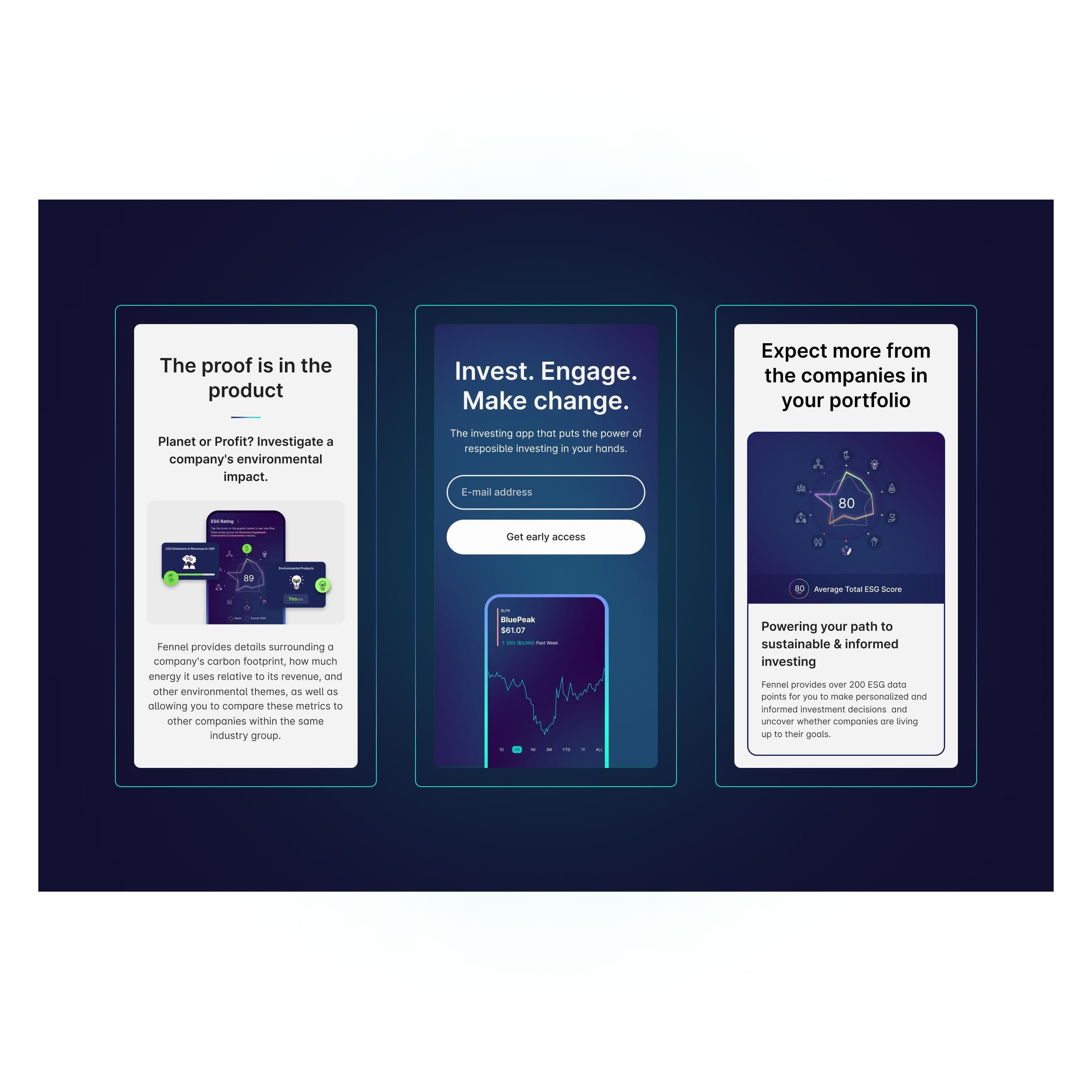 The new landing page serves as a compelling entry point for potential investors and users. With an optimized structure, mobile responsiveness, and engaging visuals, it effectively communicates Fennel’s purpose while driving conversions. The result is a streamlined digital touchpoint that enhances user trust and strengthens Fennel’s position in sustainable investing.