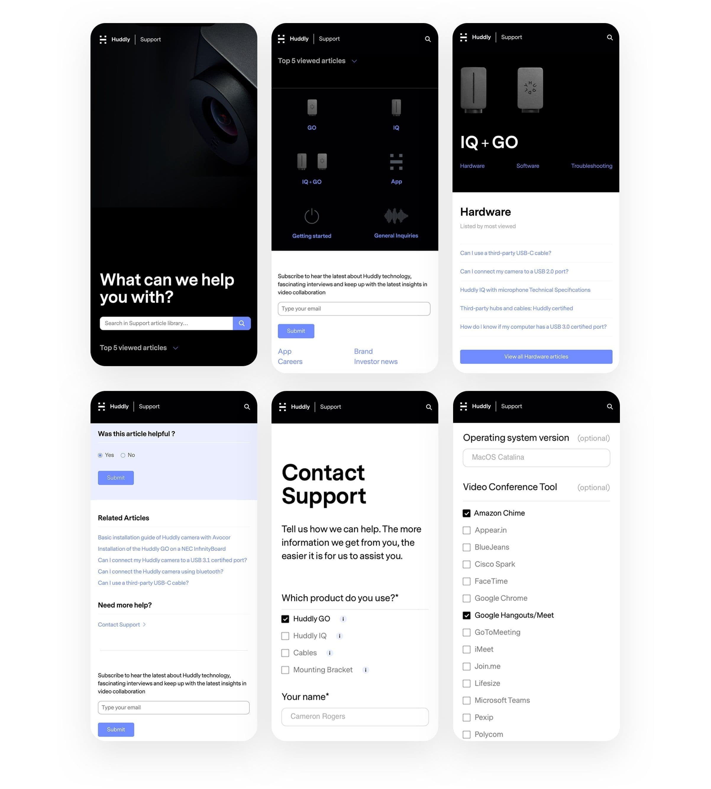 While redesigning Huddly's customer support page, we streamlined the information architecture, enhancing both its accessibility and usability. The process of locating information has been simplified, making it significantly more user-friendly.