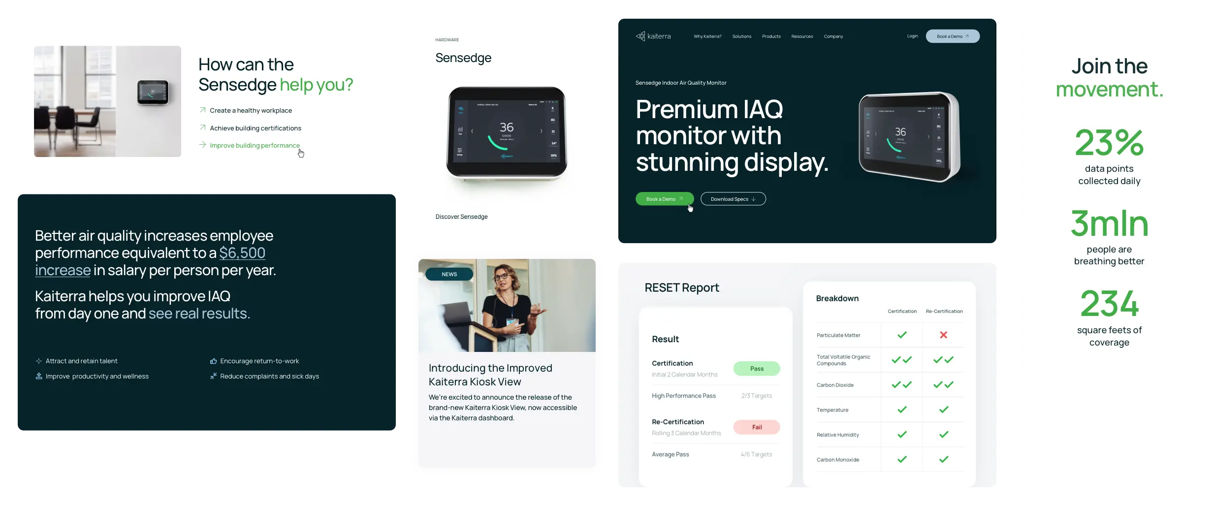 The revamped website for Kaiterra boasts speed, intuitiveness, and accessibility. Designed with the viewpoint of a prospective client in mind, it aims to present engaging and compelling content. It exudes confidence and expertise, underpinned by real data, which is effectively illustrated through graphs, statistics, and other persuasive visual elements.