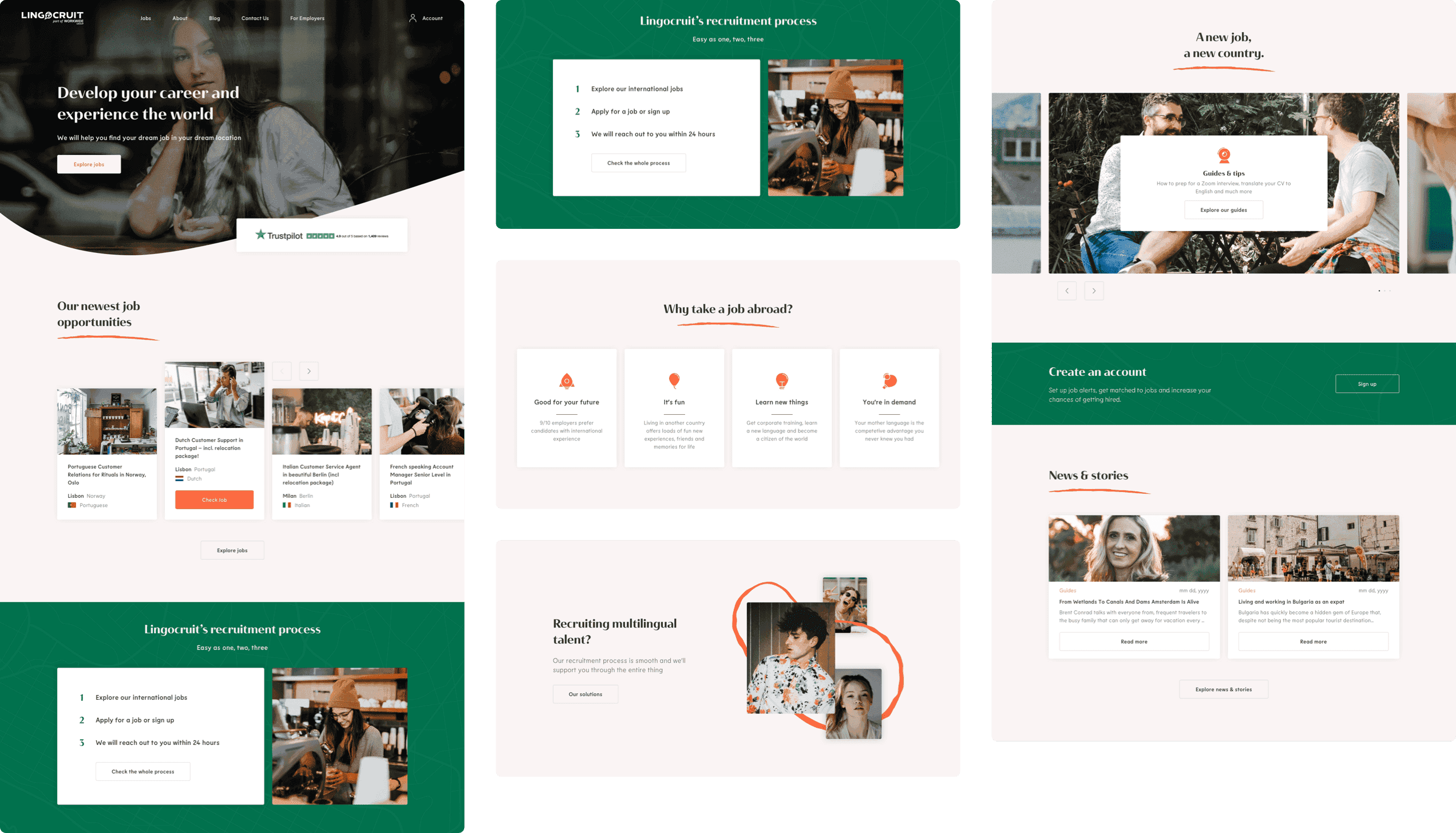 Lingocruit wanted their platform to make the job search easier for aspiring expats, as well as to streamline the recruitment process for employers. It was crucial for their website to clearly and accessibly convey their values, objectives, and a straightforward application process.