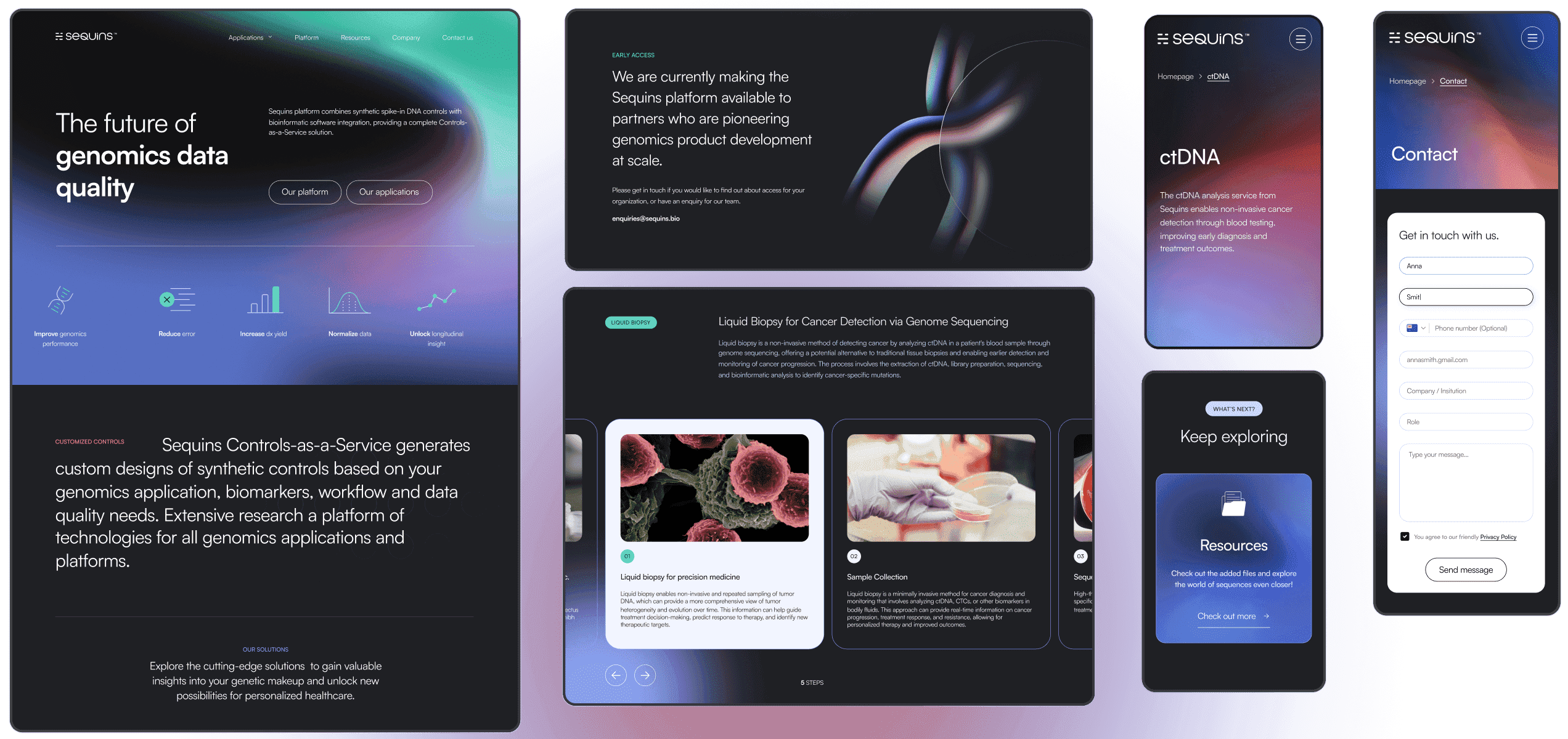 We created a new, minimalist logo and key visual for the Sequins brand. When it comes to the company's overall branding, we picked a color scheme that's modern and futuristic. At the same time, it's fairly simple. Instead of being overwhelming or chaotic, it's memorable and captures the user's attention. We also reorganized their website content using a proper hierarchy, ensuring that visitors can easily find what they are looking for.