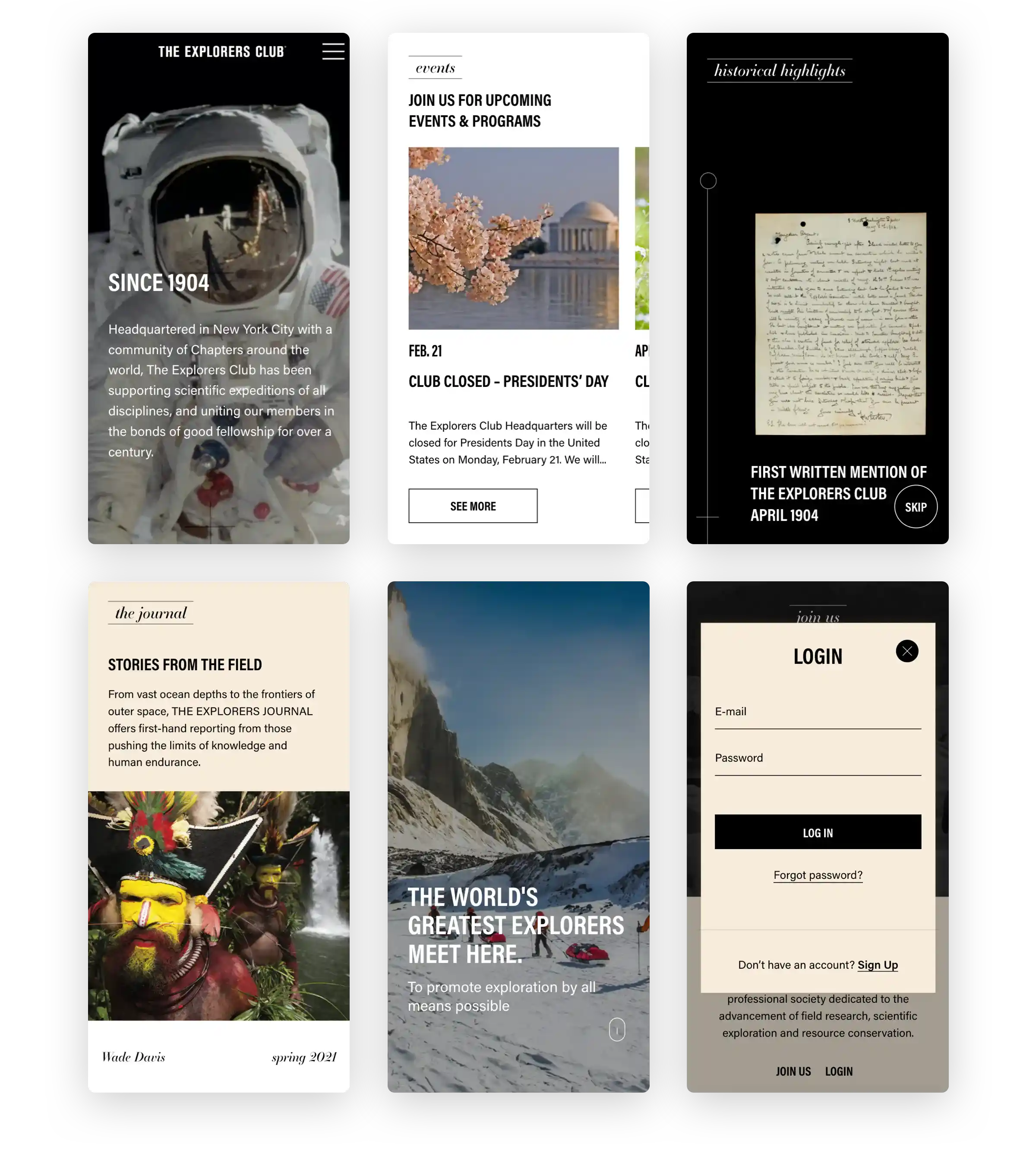 Our task involved integrating the Club's established color schemes, palettes, and typography into the website's design. The primary objective was to encapsulate The Explorer's Club's ethos and values into functional and cohesive designs.