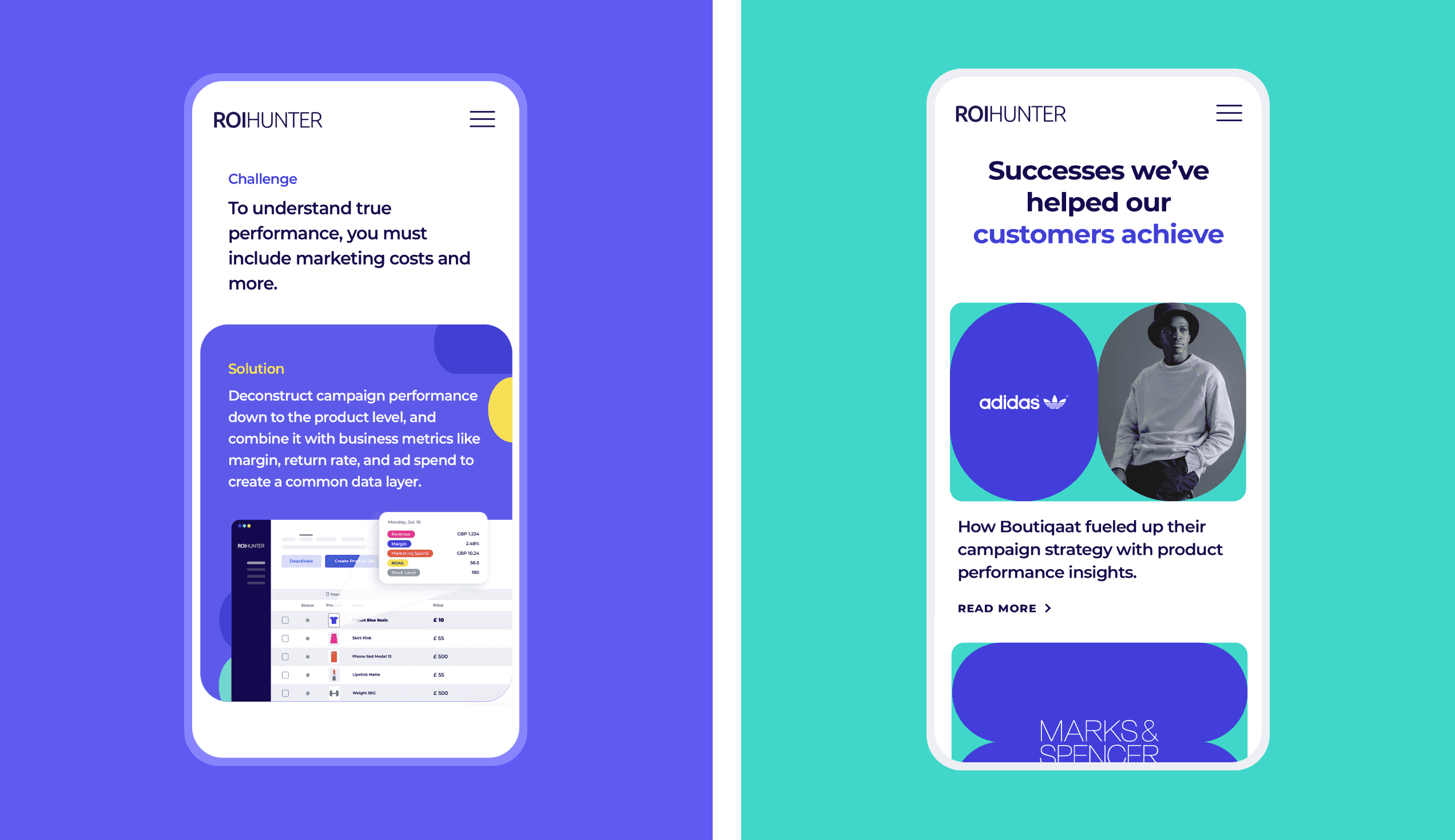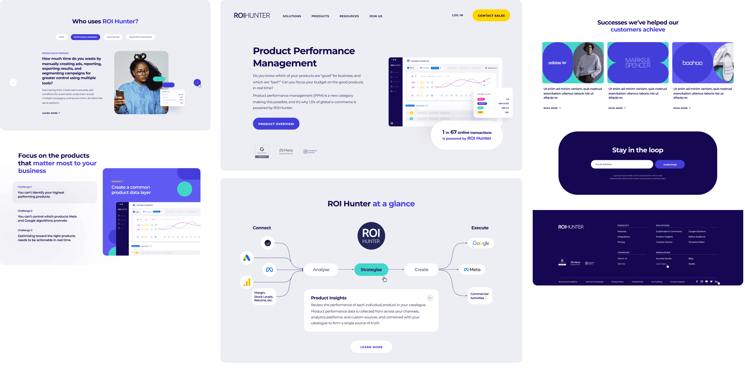 First, we created a number of ideal client profiles. Based on that, we designed a website section that explains why one might need ROI Hunter's offering. We also added a testimonials section to make the entire website more convincing. Our main goal was to enhance ROI Hunter's credibility through the use of real customer feedback.