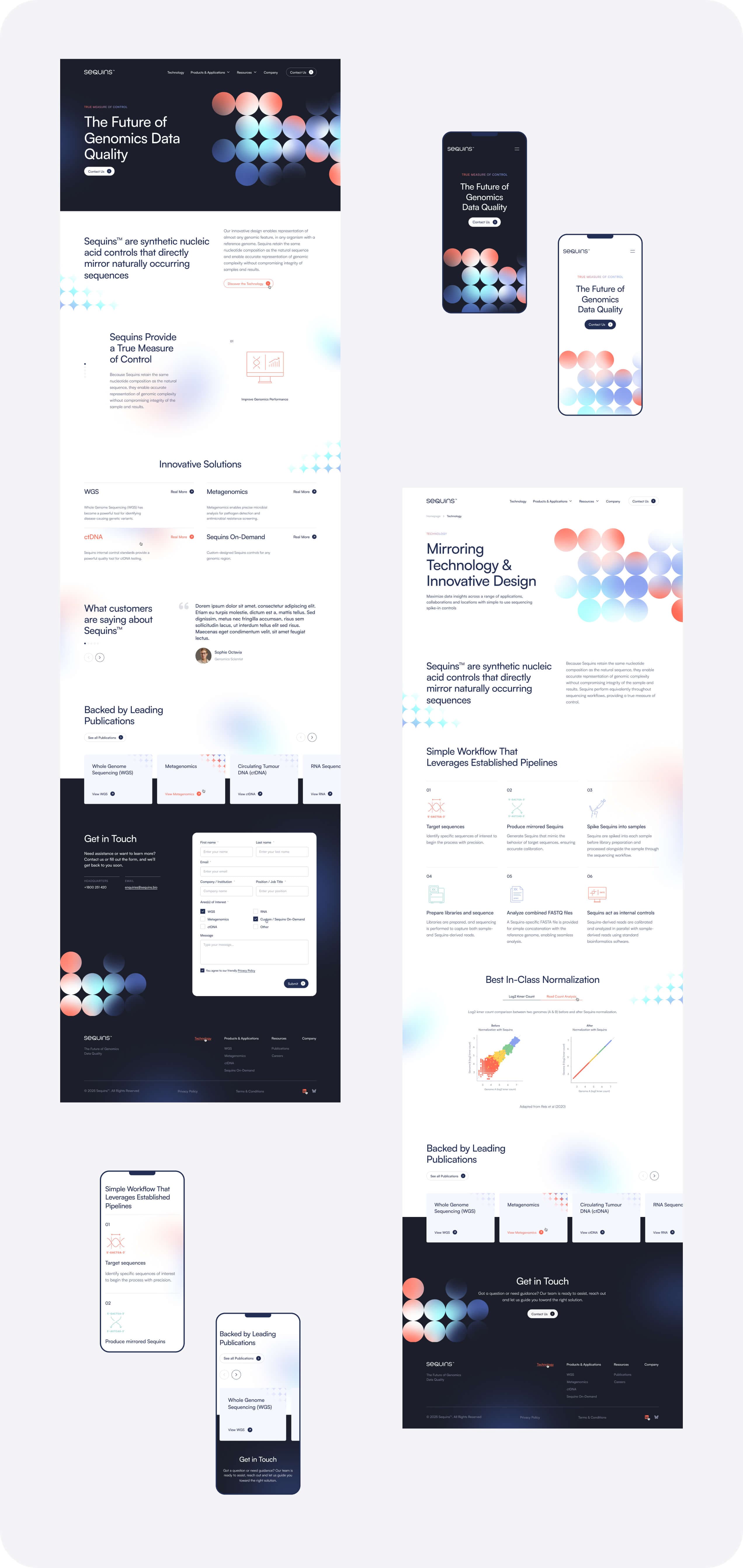 A modern palette of cool blues and subtle neutrals, paired with clean, sans-serif fonts, reinforces the scientific rigor of Sequins’ technology. This approach ensures high readability and a consistent, professional appearance across all devices.